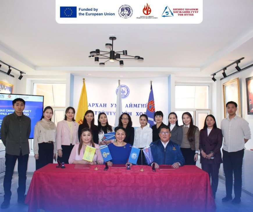 Дархан-Уул аймгийн Эмэгтэйчүүдийн холбоо, Дархан-Уул аймгийн Үйлдвэрчний Эвлэлийн Холбоо, “Бизнес боломж хөгжлийн гүүр” төвүүд НҮТББ хамтран ажиллах САНАМЖ БИЧИГ-т гарын үсэг зурлаа.